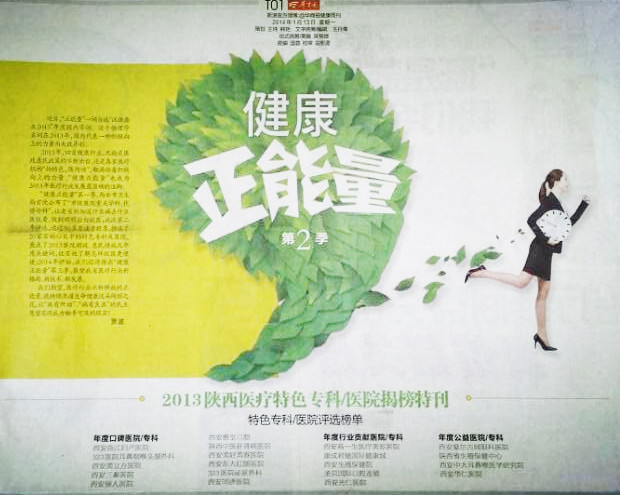 那么在这一年中,哪家医疗机构技术过硬,哪家设施先进,哪家服务好?自2013年12月18日起,华商报联合华商网推出“2013·健康正能量”陕西医疗年度总评榜评选活动。活动分市级公立医院展示和非公有医院评选,读者和医务工作者可通过微信、网络、信函、邮件等形式推荐和自荐非公有医院中的年度行业贡献医院、年度口碑专科、年度公益专科。