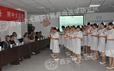 活动的后,西安中大耳鼻喉医院全体护士面对患者整齐列队,手持蜡烛,进行了庄重的宣誓。