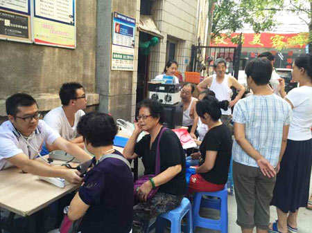 社区居民正在接受血压测量