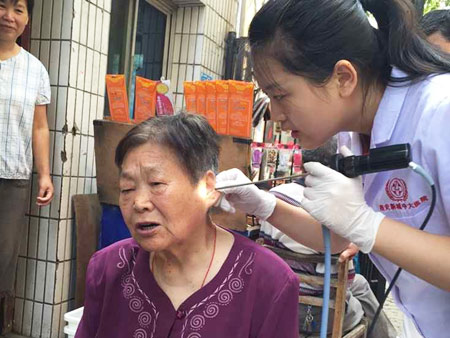 居民接受耳内窥镜检查