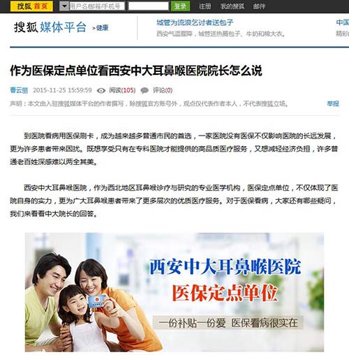 首 页 > 媒体报道 > 作为医保定点单位,看看西安中大耳鼻喉医院院长怎么说