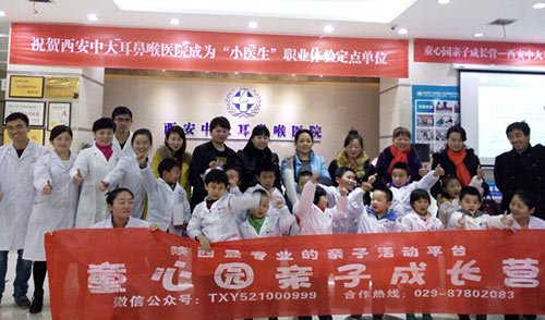 为了让孩子了解到简单的耳鼻喉健康知识,学会关爱自身和父母的健康,12月5日,作为“小医生”职业体验定点单位,西安中大耳鼻喉医院协同童心园亲子体验营,合力举办了一场别开生面的耳鼻喉小医生体验活动。