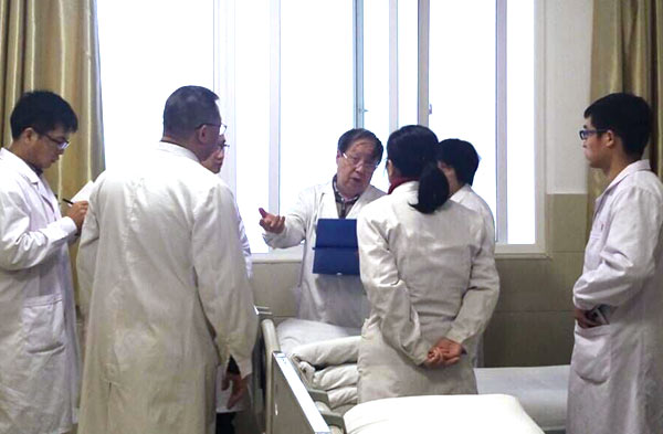 查房之初,来长荣教授首先向409医院住院部主任详细了解了各患者的症状和治疗现状。查房过程中,来长荣教授细心询问了每一位住院患者,针对特殊患者进行专科检查,提出指导性建议,并不时叮嘱患者保持良好的日常习惯,配合治疗,早日。