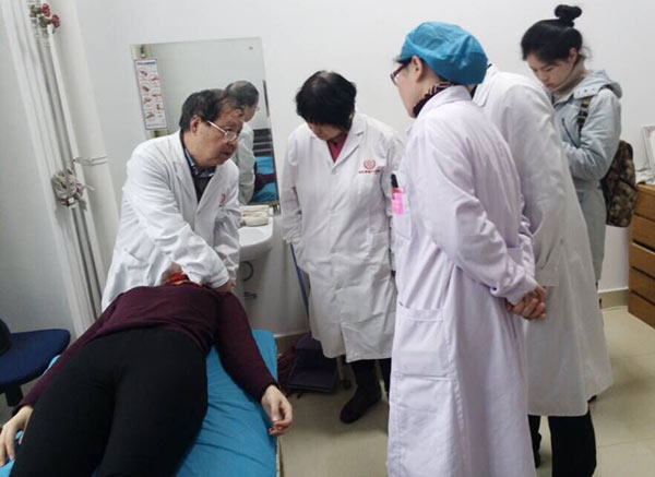 会诊过程中,来长荣教授接诊到一位耳石症患者,干脆亲身示范,向现场医师讲解如何通过体位耳石复位手法治疗耳石症,将治疗步骤传授给在场医师和患者本人。患者如获至宝、感激非常,表示这一趟候诊实在来的太值了。